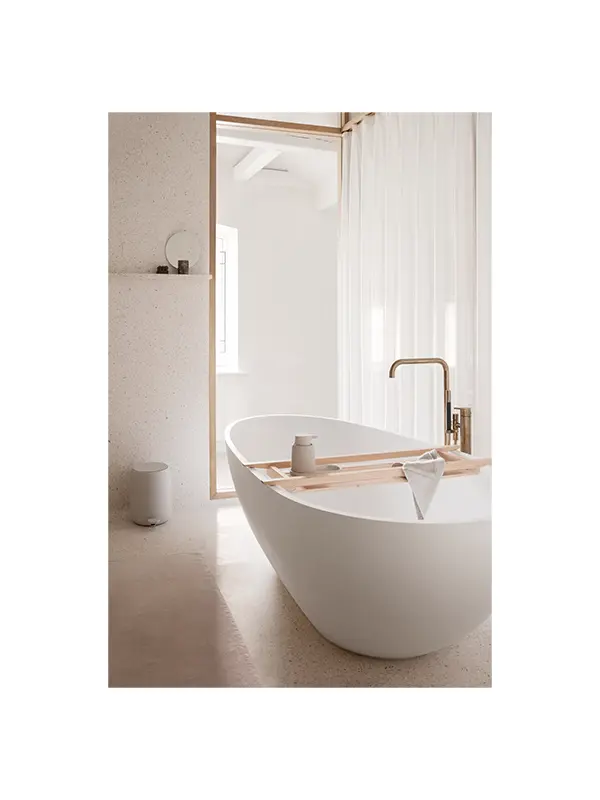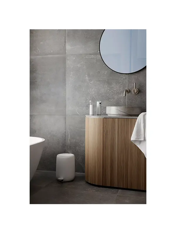 Style kann so soft sein: Der Treteimer SONO ist kein Typ mit Kanten und Ecken. Die weichen Formen und die matte Soft-Touch-Oberfläche im klassischen White machen ihn dennoch zu einem wahren Helden im Bad. Immer da, wenn man ihn braucht, wartet er geduldig auf seinen Einsatz. Durch die Smart-Close-Funktion schließt sich der Deckel sanft und leise ganz von selbst nach dem „Antippen. Darüber hinaus befindet sich im Treteimer ein herausnehmbarer und leicht zu reinigender Eimer aus Kunststoff. Erhältlich in mehreren Farben. Fassungsvermögen 3 oder 5 Liter.